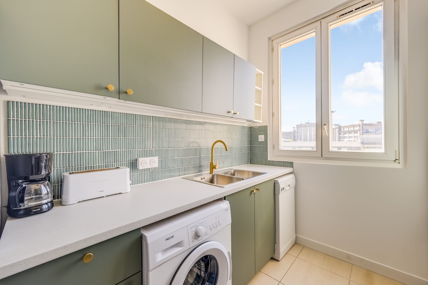 Niché dans un superbe immeuble Haussmannien, ce coliving de 82 m² séduit par ses volumes et sa très belle hauteur sous plafond. Il propose 5 chambres lumineuses (entre 10 et 14 m²) et une cuisine équipée (four, lave-vaisselle, petit électroménager, lave-linge) récemment rénovée. Côté confort : une salle de douche moderne et un WC séparé. Tout est entièrement meublé et "prêt-à-vivre". Accès sécurisé par digicode et badge. Le clou du spectacle ? Une vue imprenable sur Montmartre et le Sacré-Cœur.